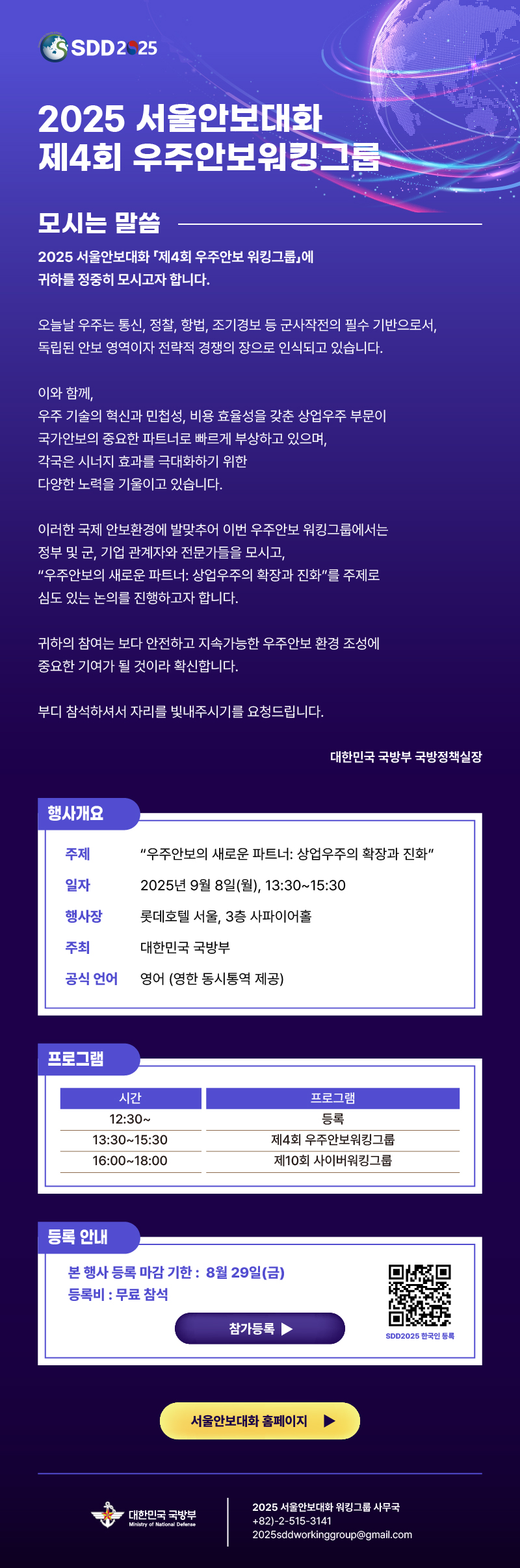 [2025 서울안보대화 워킹그룹] 제4회 우주안보워킹그룹 안내