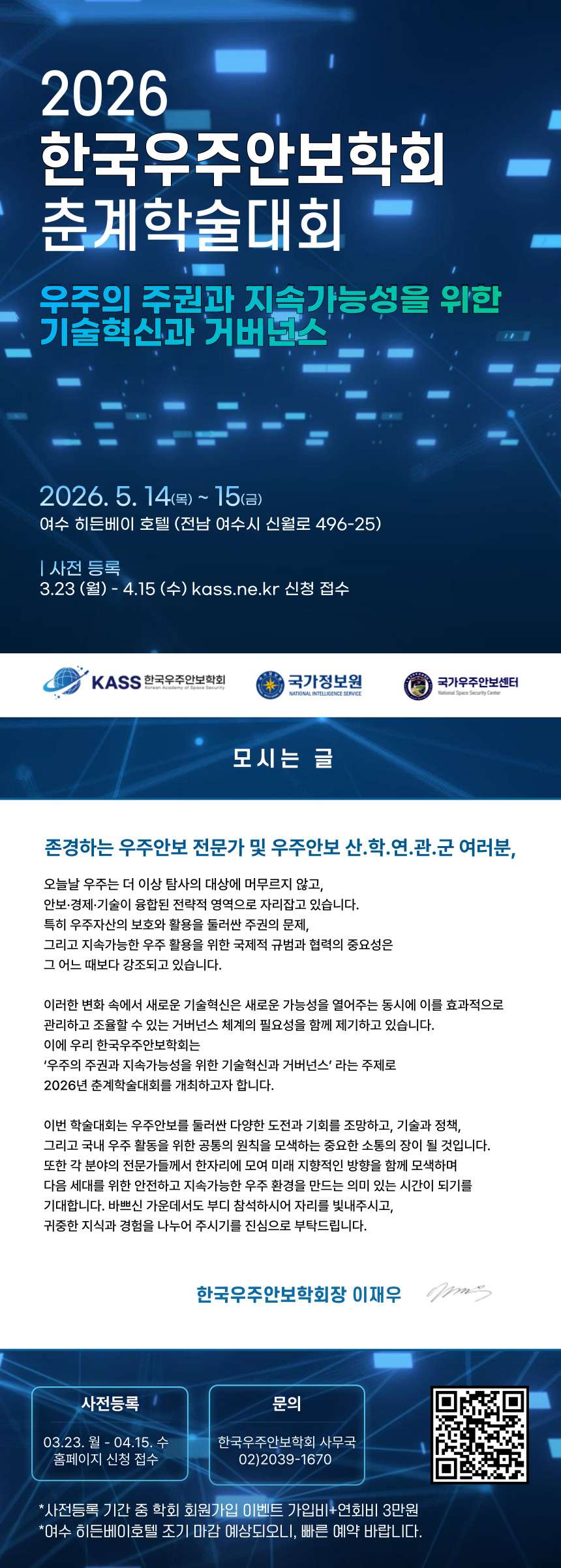 한국우주안보학회 춘계학술대회 안내(26. 5. 14. ~5. 15.)